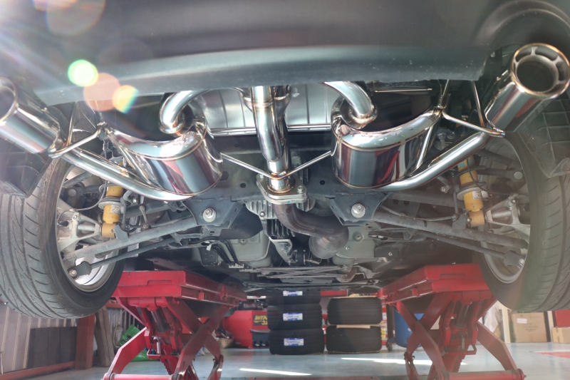 今回フロントにもノブレッセ追加しました。友人には純正から何が変わったのかわからないといわれているそうですが、そのさりげなさがドレスアップの醍醐味でもあります。わかる人にはわかるドレスアップを当店は推奨いたします。ノブレッセリアバンパーと迫力のノブレッセ4本だしマフラーが!という設定で自然にマッチしています。サウンドも良好 人気なのがわかります。遠いところありがとうございます。